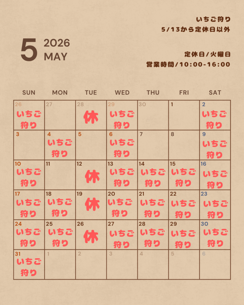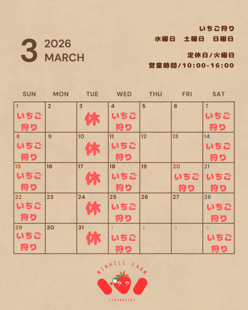 いちご狩り開催日 水曜日 土曜日 日曜日